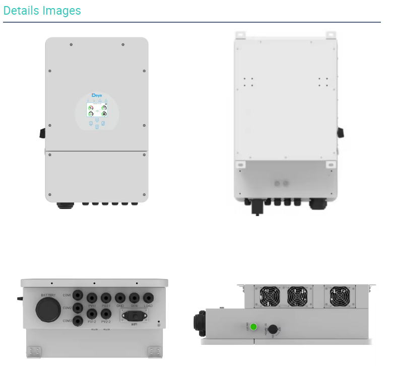 Output Type:Single Inverter Efficiency:97.6% Place of Origin:Anhui, China Model Number:SUN-10/12K-SG02LP1-EU-AM3-P Brand Name:Deye Input Voltage:370 (125-500)V Output Voltage:220/230V Output Current:50/47.9A Output Frequency:50Hz/45Hz-55Hz 60Hz/55Hz-65Hz Size:420x670x233mm